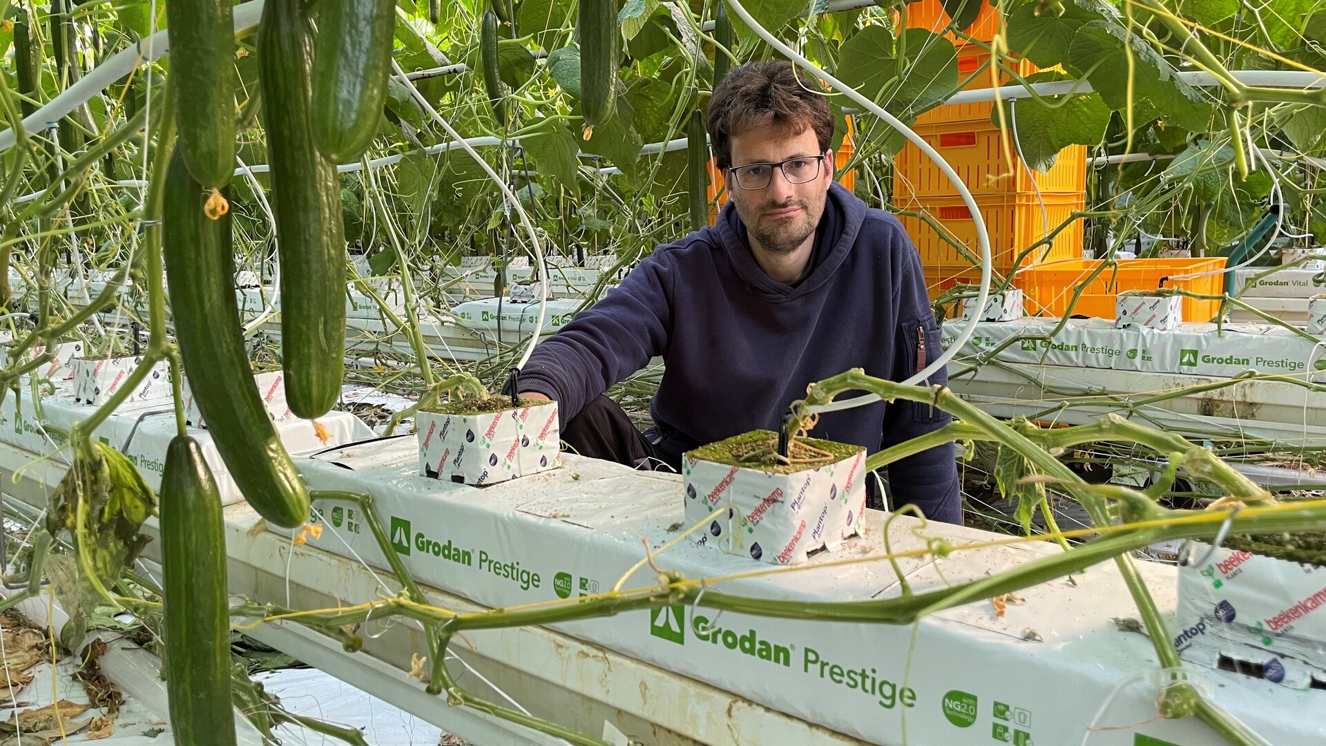 The blocks containing the young plants are placed straight onto stone wool slabs as soon as they arrive. “Cucumbers tend to be thirsty plants, so we give them plenty of water to encourage them to take root. This doesn’t take long; we can ease off after a couple of days and let the roots do their work. In the summer, the plants often start flowering after just seven or eight days and we can be harvesting the first fruits after 18 or 19 days.”